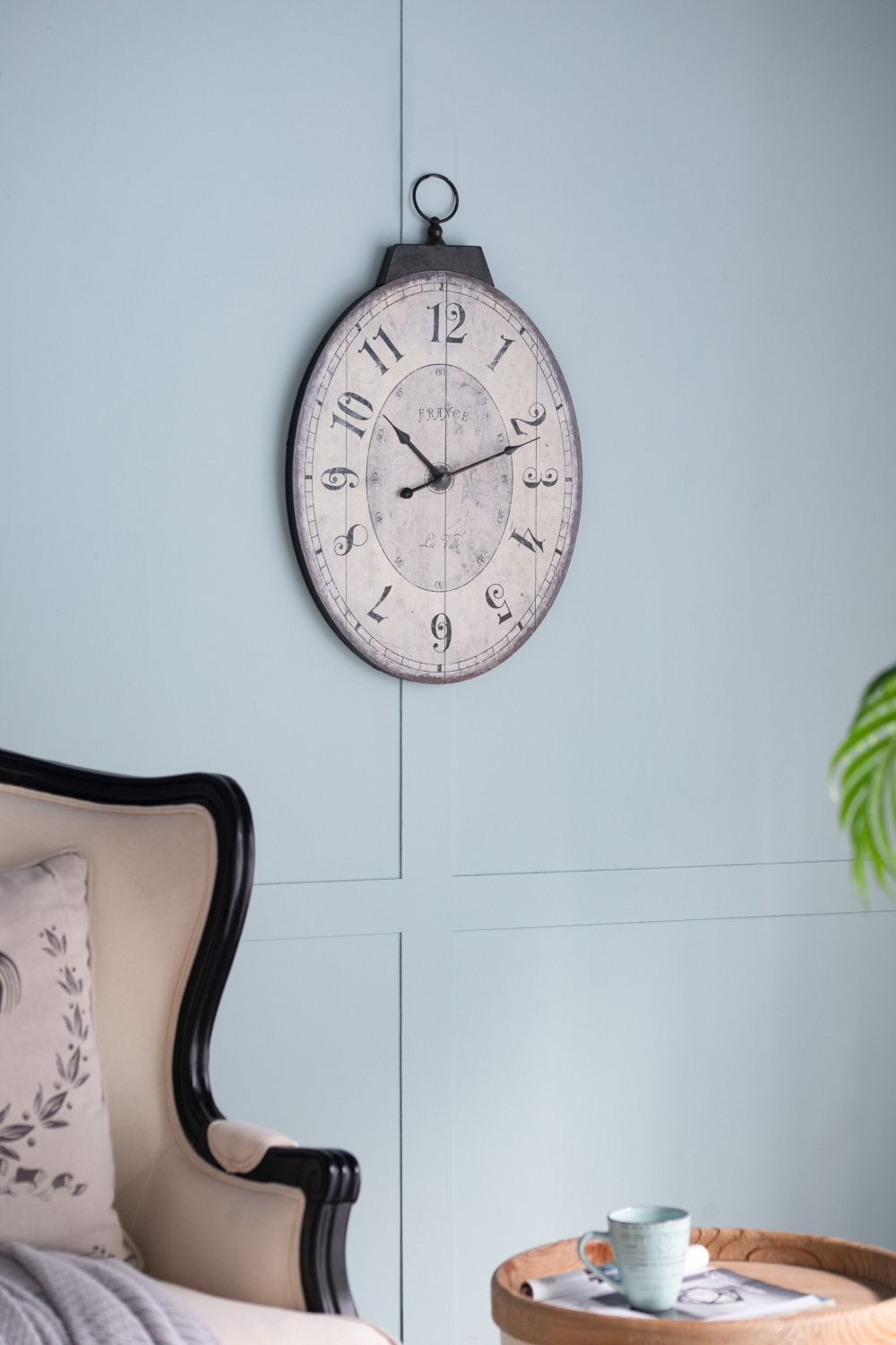 Home > 18" x 29" Antique White Oval Wall Clock, Traditional Vintage Home Decor Clock