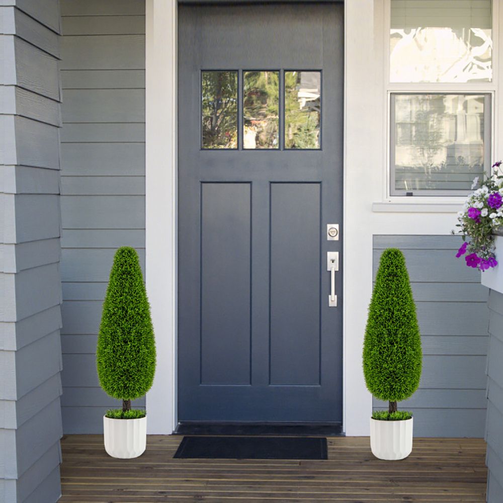 3.Premium New PE Material: Crafted from sun-proof PE material, the 2-pack faux potted cypress bushes are suitable for outdoor use. Additionally, the selected material is smell-free and allergic-proof, making it a safe indoor decoration for households with kids and pets.