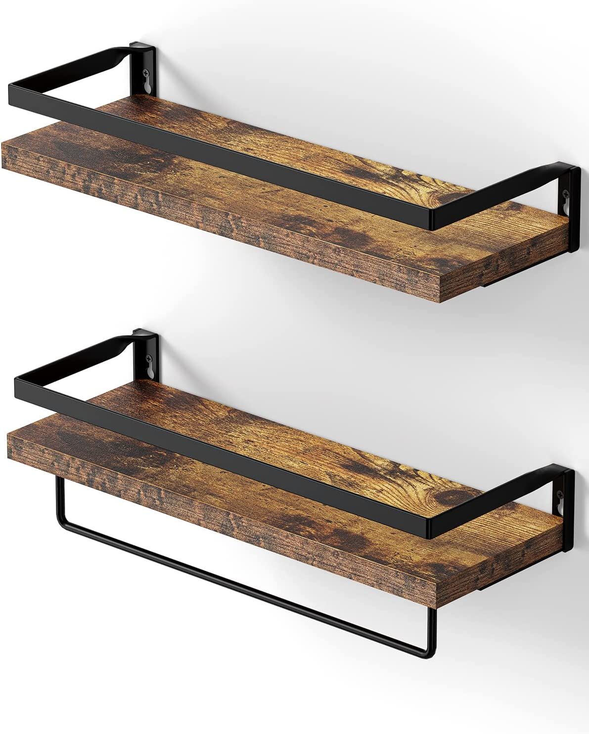 Floating bathroom shelf with towel rail; bathroom/living/kitchen/bedroom wall shelf set of 2; light brown; dark brown; black.
