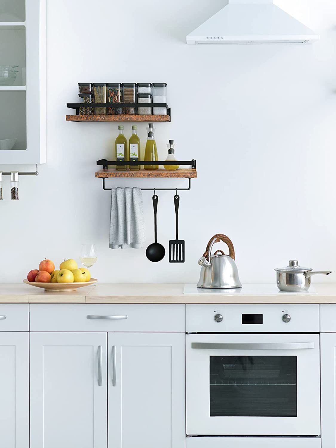 3. Kitchen Floating Shelves - When you're cooking; all you want is to be able to access your ingredients without opening any cupboard doors. These floating shelves will help!