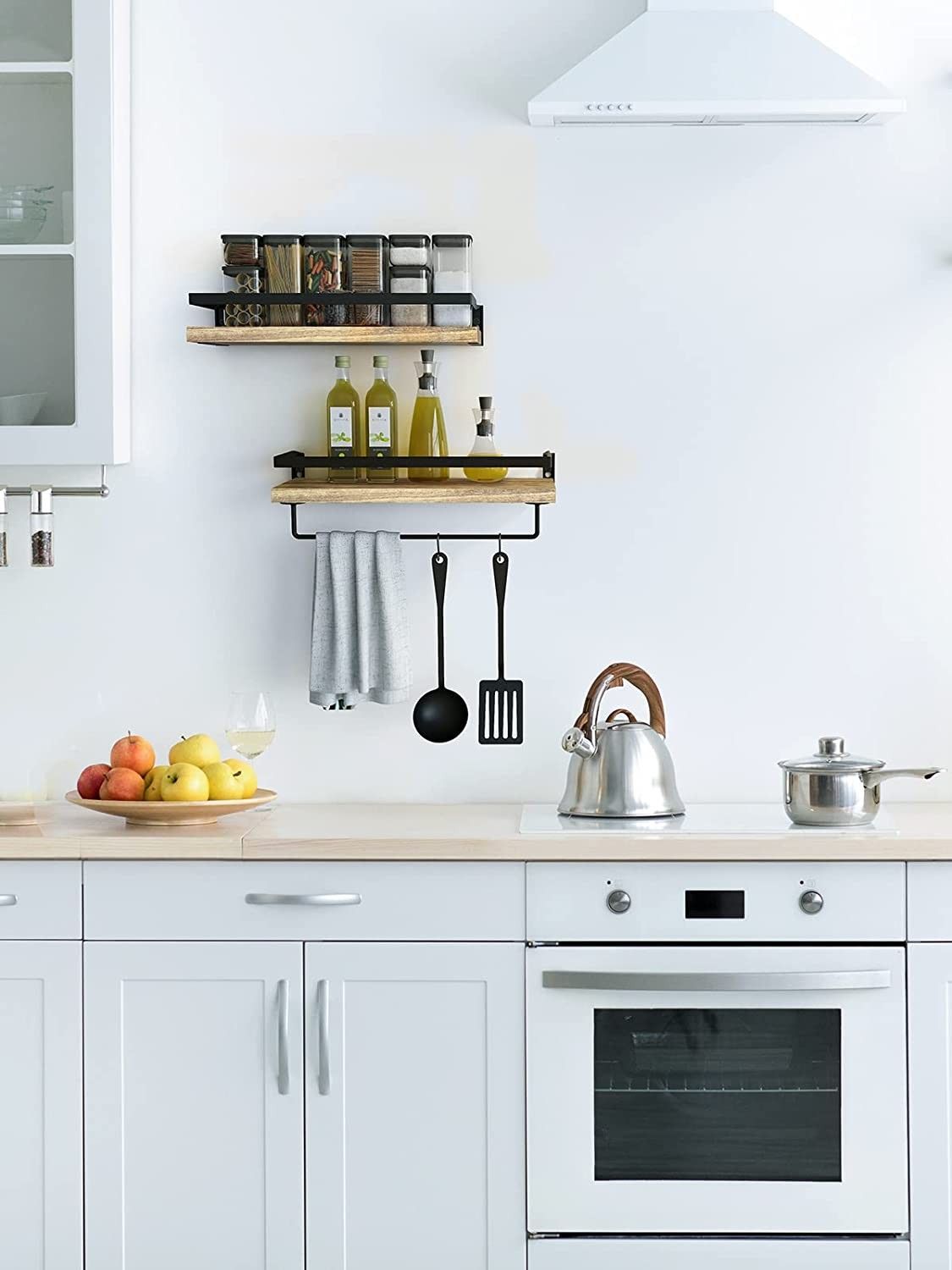 3. Kitchen Floating Shelves - When you're cooking; all you want is to be able to access your ingredients without opening any cupboard doors. These floating shelves will help!