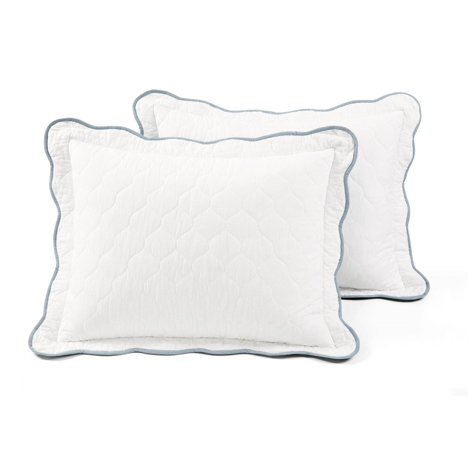 Home > Full/Queen White Blue Scalloped Edge Reversible Thin Light Quilt Set