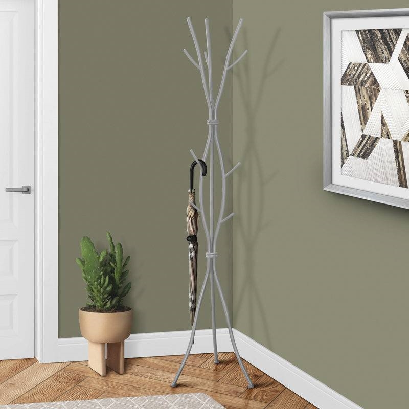 Just as much of an eye-catching accent piece as it is a spot to corral accessories, this 74-inch Freestanding Silver Metal Coat Rack Entryway Hall Tree Umbrella Stand is a must-have for your entryway. Standing 74’’ tall, its branch-inspired frame is crafted from metal and features a neutral solid finish. Eight hooks are designed to hold jackets but also work just as well for catching scarves or placing bags. We love how its unfinished look adds a rustic, nature-inspired touch to your space that's still versatile enough to complement modern ensembles.