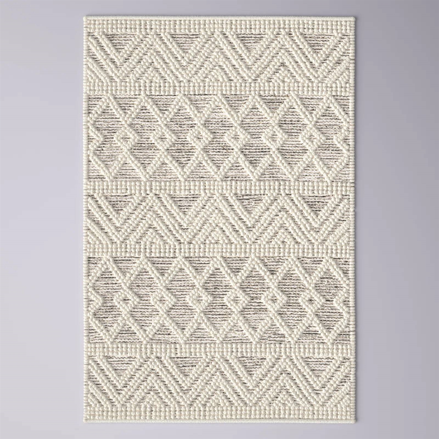 This 2-ft. x 3-ft. Hand Woven Wool Blend Grey Beige Ivory Persian Style Area Rug elevates your living room with a motif inspired by classic Persian textile arts and lodge-inspired style. It's handmade in India from 65% wool, and 35% polyester – a material that's naturally durable, hypoallergenic, and stain-resistant. The design features a high-low pile height with rows of cream geometric patterns that stand out against the gray background. This makes it a great choice for creating a cozy environment in lower-traffic rooms. We recommend rolling out a rug pad underneath to keep it securely in place.