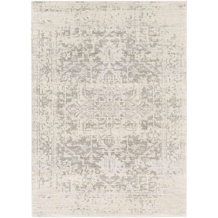 Give any room a vibrant oriental feel with Persian patterns with this 3'11" x 5'7" Distressed Oriental Area Rug in Light Grey / Beige. Theis rug is power-loomed from stain-resistant polypropylene, so it stands up to spills and splashes. The geometric pattern is distressed for a lived-in vibe in any space. Comes in medium 0.3" pile height, ideal pick for low traffic rooms like the living room or bedroom. Easy care, just vacuum with no beater bar or rotating brush or spot clean with water / mild detergent. To keep securely in place, we recommend pairing it with a rug pad.