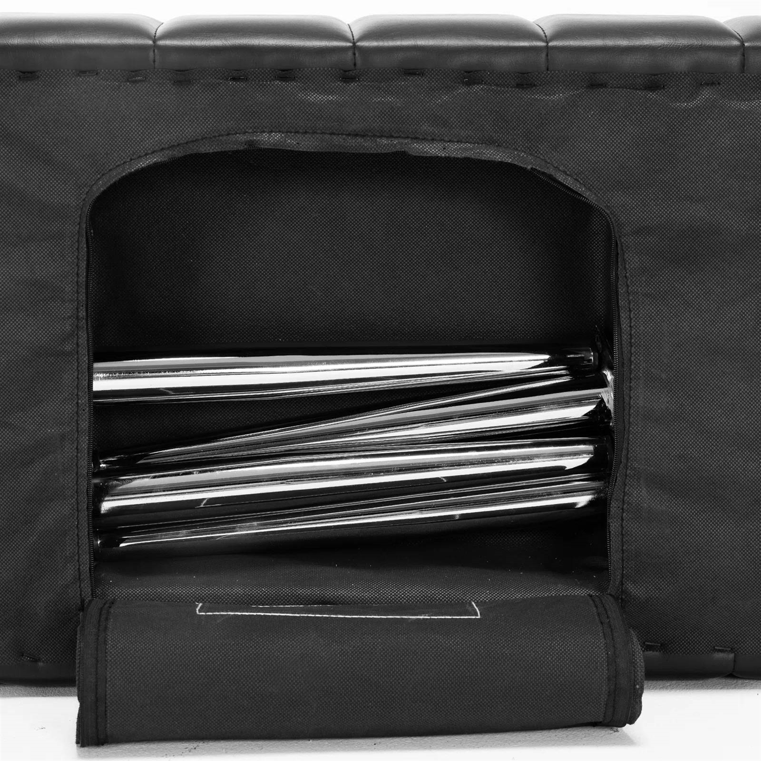 • Metal legs and screws are stored in the zipper compartment. You only need to spend 5 minutes using the provided screws to fix the metal legs, and then you can use the bench.