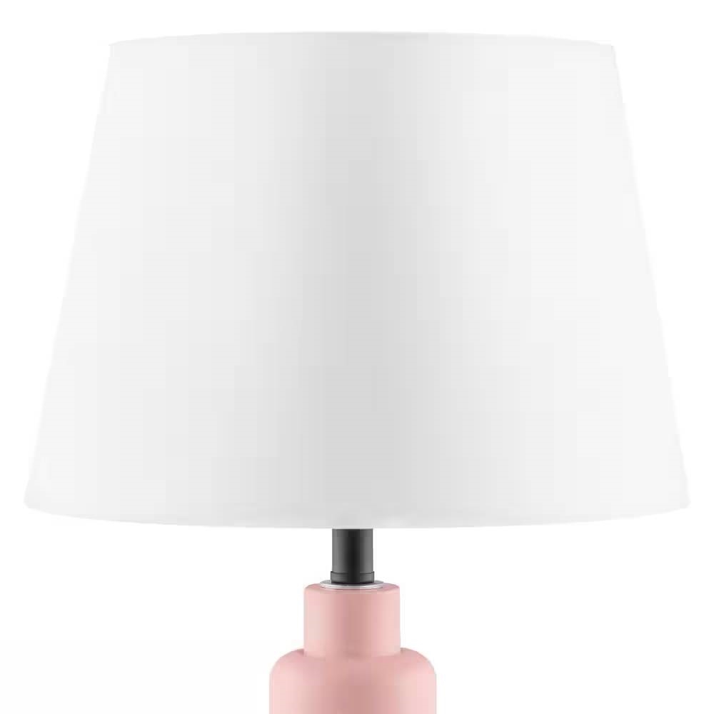 This lamp size is 10 in. W x 10 in. D x 14.05 in. H, which is finished in a mixed grey resin base. This Small Pink Desk Light Table Lamp with White Fabric Shade for Bedside Nightstand simple and modern design can be a good decoration for your living room or bedroom. It is using E26, 1 x 60-Watt type A not included. Enclosed manual makes it easy for you to install. It is not only a good choice for home decoration, but also an ideal gift choice for your family or friends on Christmas, Thanksgiving Day, birthday or housewarming. It can pass ETL certification.