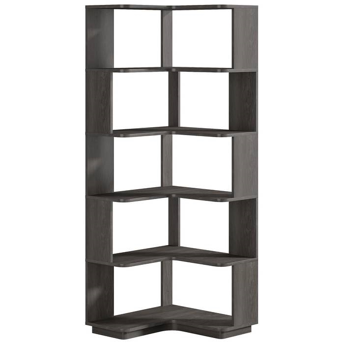 Home > Multifunctional 6 Shelf Corner L-Shaped Bookcase in Dark Grey Wood Finish