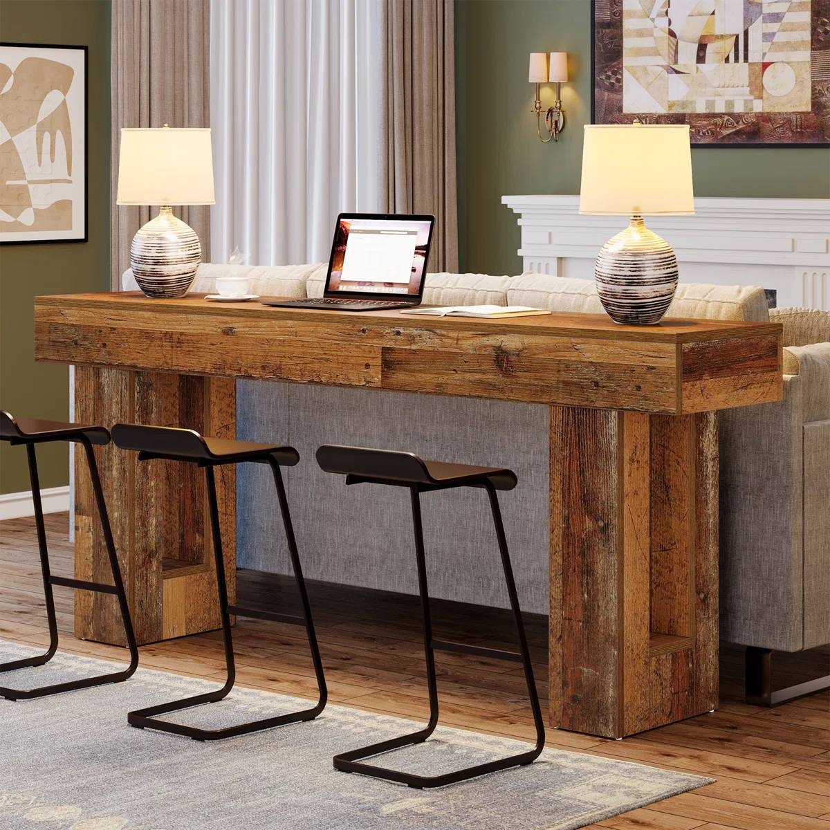 Modern Farmhouse 63-inch Entryway Console Sofa Table in Distressed Wood Finish