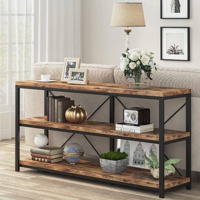 Home > Industrial 55-inch Wood Shelf Console Sofa Table with Sturdy Black Metal Frame