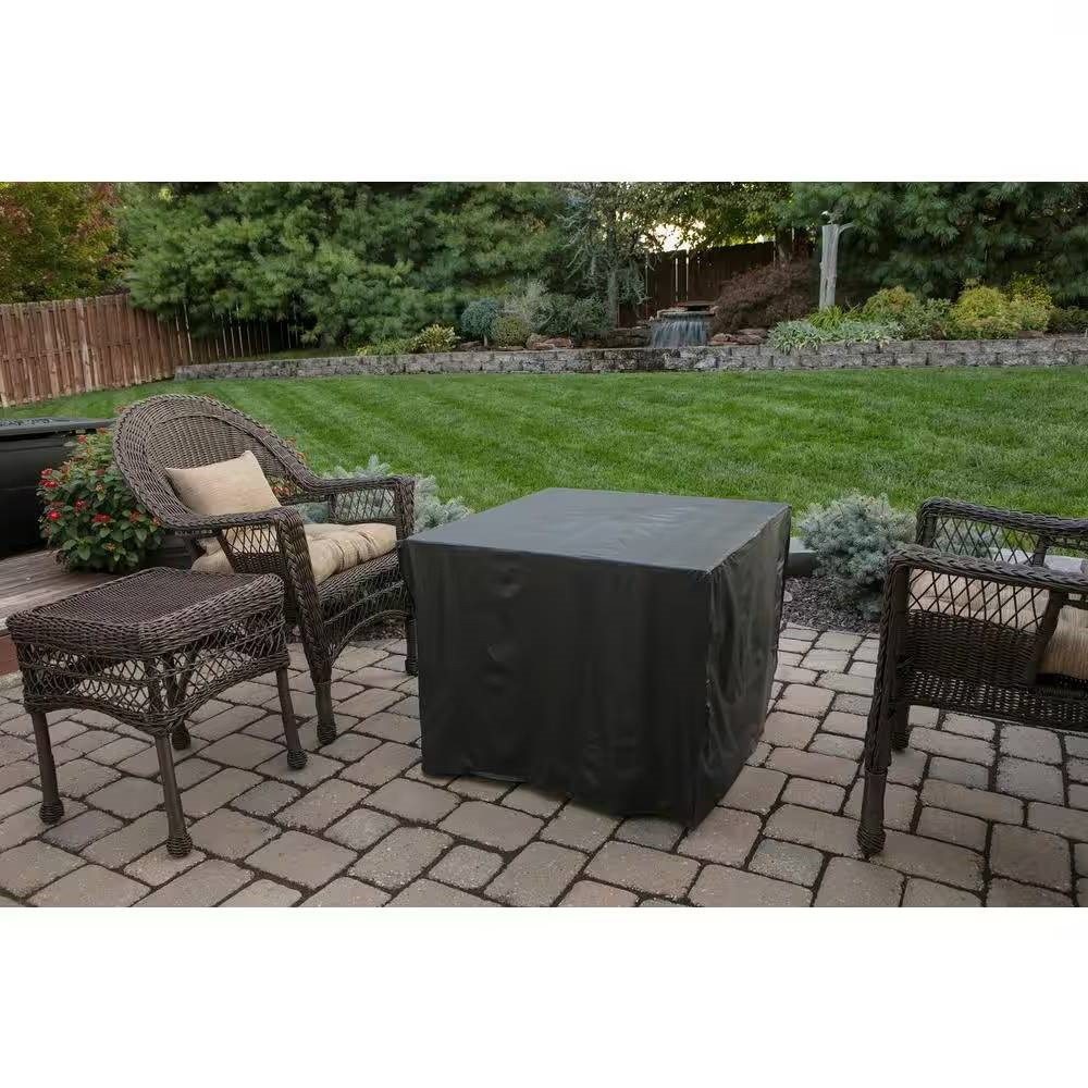 With its tile and steel mantel, this 30-inch Outdoor Bronze LP Propane Gas Fire Pit with Lava Rocks and Cover features the classic elements of high end furniture, with the durability of weather resistant steel. Its decorative base cleverly conceals a propane tank (not included) and control panel, making it an attractive centerpiece for your outdoor living space. Complete with a 30,000 BTU’s stainless steel burner, you can enjoy all the ambiance of a classic fire in the comfort of your backyard. Adding to the elegance, this unit includes lava rock, which beautifully accents its flames. The unit is easy to assemble with no tools needed and includes a 1-year limited warranty and protective cover.