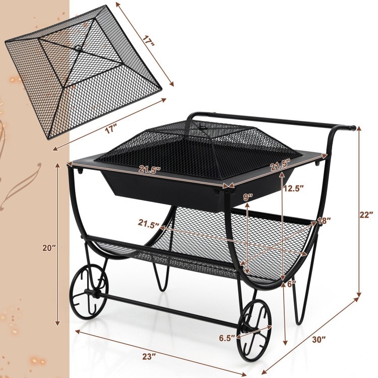This Portable Outdoor Wheeled Log Storage Rack and Wood Burning Fire Pit provides the best of both worlds! Comes with 2 smooth and wear-resistant wheels, this sturdy firewood log rack allows for easy transportation to any desired outdoor location. Simply place logs to the fire pit above for all your storage and burning needs. The mesh spark screen avoids embers from flying out while promoting air circulation to make the flame burn more vigorously. No matter what kind of weather is it, the high-temp resistant and rustproof steel frame ensures this fireplace has high durability outdoor use year round.