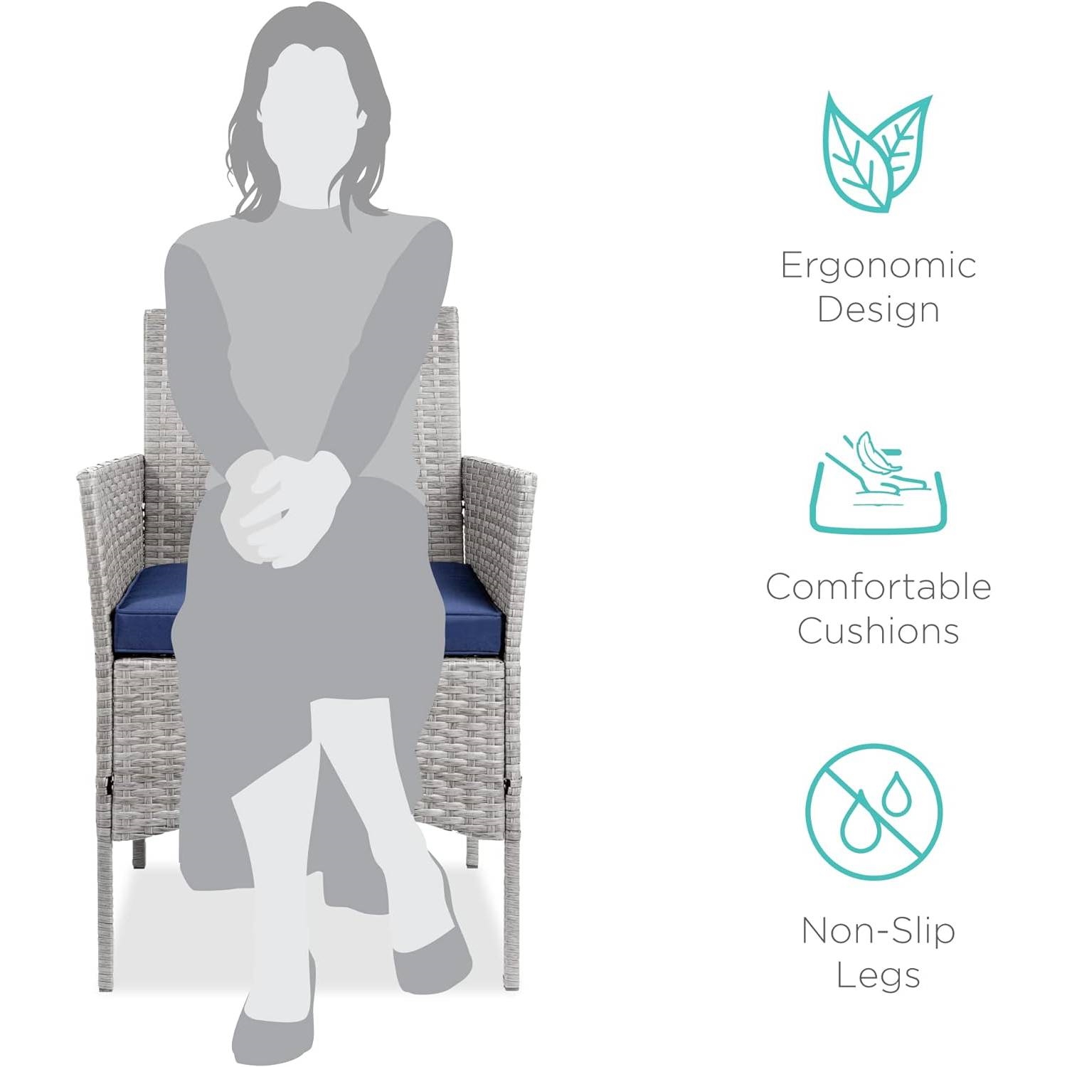 • 3-Piece Grey PE Wicker Outdoor Patio Furniture Dining Set w/ Navy Blue Cushions
