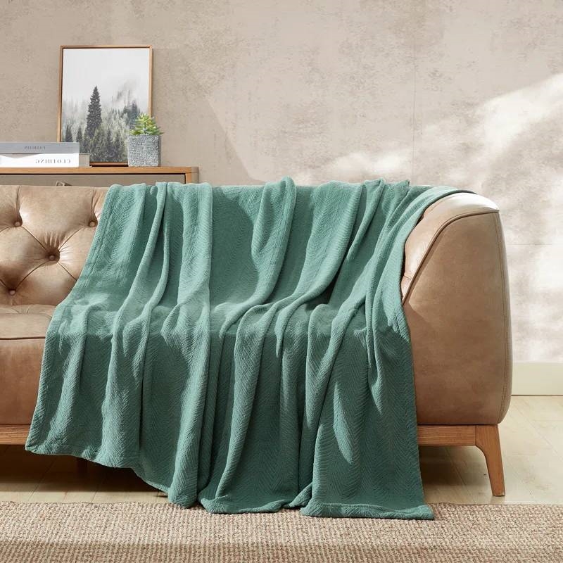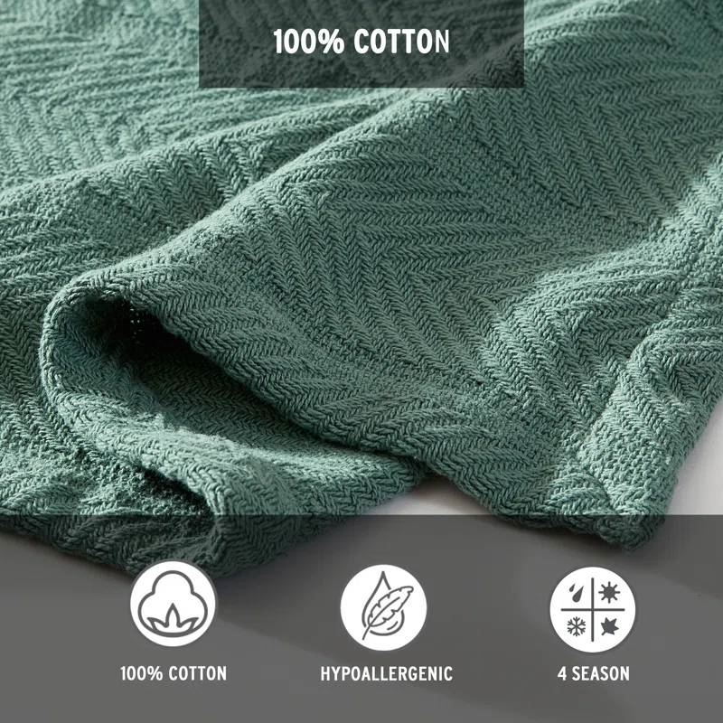 King size Lightweight 100-Percent Cotton Reversible Knit Blanket in Green