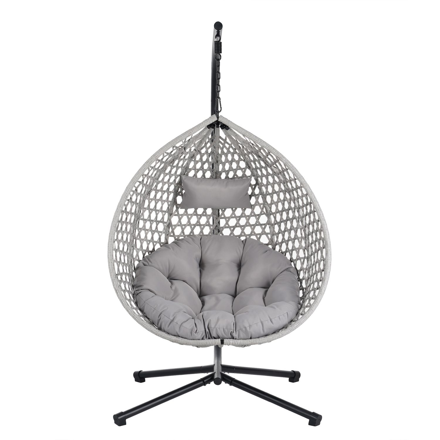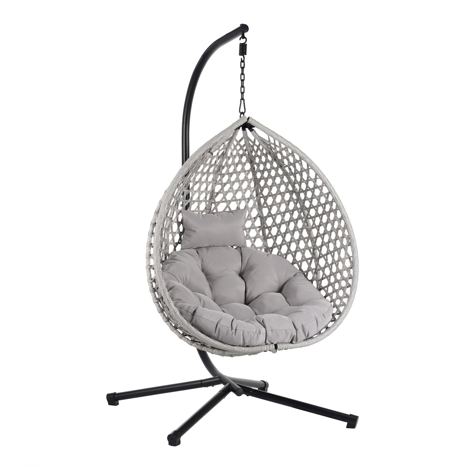 [Durable PE Rattan Material]:Crafted from high-quality PE rattan, this hanging chair is resistant to weather, UV rays, and wear. The woven texture mimics natural rattan while offering long-lasting performance for both indoor and outdoor use.